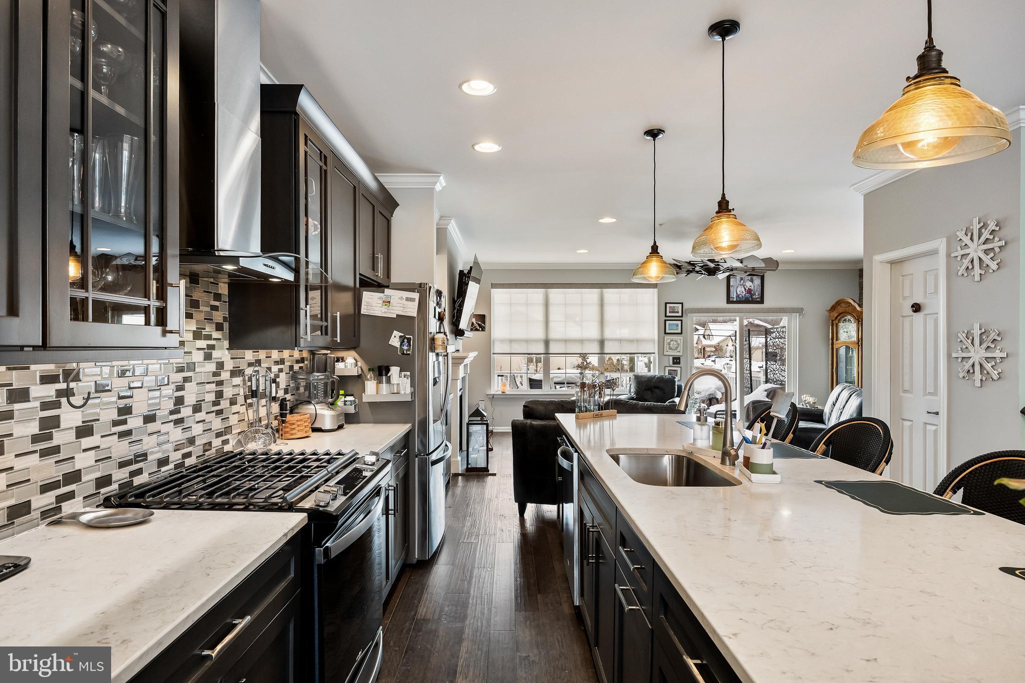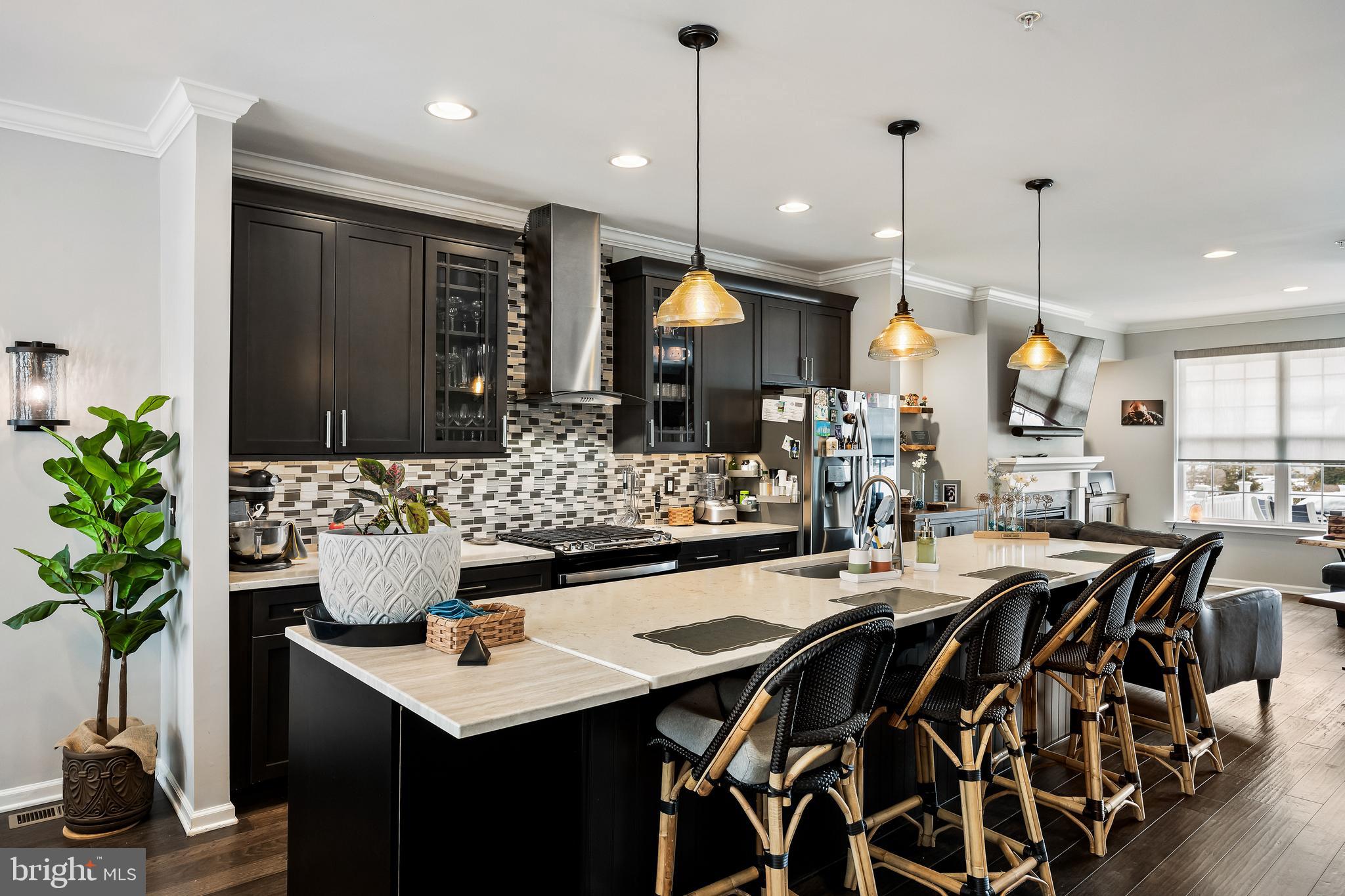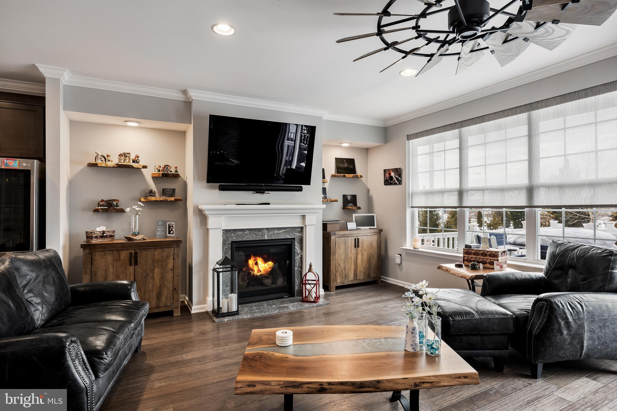 Outstanding luxury townhome in the desirable Winding Brook development in Marlton with many upgrades throughout! The first floor of this home boasts a large family room complete with gas fireplace, custom cabinetry, quartz counters, a king size Murphy bed and a full accessible bathroom with new fixtures, tile and features! This space was previously used as an in law bedroom/living area and could become a 4th bedroom option! The main floor has hardwood flooring throughout- the oversized living room has a 3D wood accent wall and custom plantation shutters plus access to the upper floor 20x13 composite deck with retractable awning which has amazing sunset views! The gourmet kitchen has a large center island, quartz counters, top of the line stainless steel appliances, tile backsplash and custom lighting. Just off of the kitchen is a large dining/breakfast room with ample seating for a large group making this space great for entertaining! Upstairs are three generously sized bedrooms including the primary suite with two closets (one walk in) and a spa like ensuite bath! Off of the main level is access to the yard which has a 10x20 composite deck, custom paver patio area with fire pit and fenced yard! All of this plus two car garage with built in storage and epoxy floors, a water filtration system and details throughout that make this home super special! Make your appointment to see this great home today!