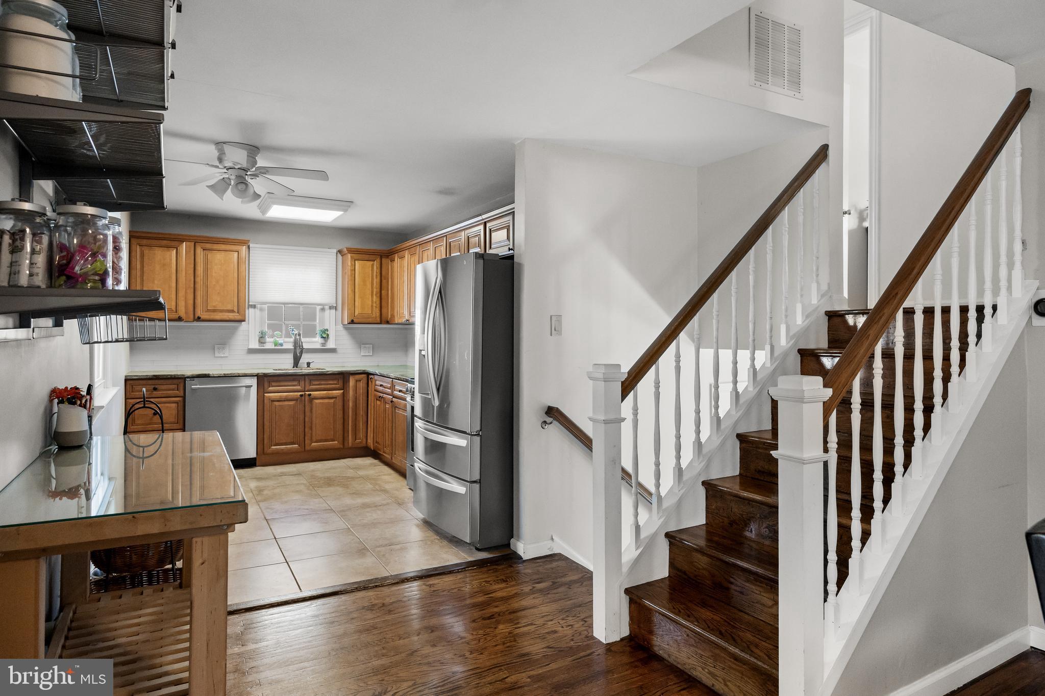 The updated kitchen showcases custom cabinetry, granite countertops, stainless steel appliances, and modern finishes! Upstairs, there are hardwood floors in each bedroom plus the full bathroom that has been tastefully renovated with stylish new fixtures and finishes, adding a fresh, contemporary feel! Additional upgrades include all new windows, enhancing both energy efficiency and natural light throughout the home.